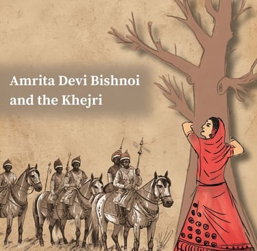 This tradition found its most tragic expression in 1730 at Khejarli, when Amrita Devi Bishnoi and hundreds from her community sacrificed their lives to stop the felling of khejri trees.